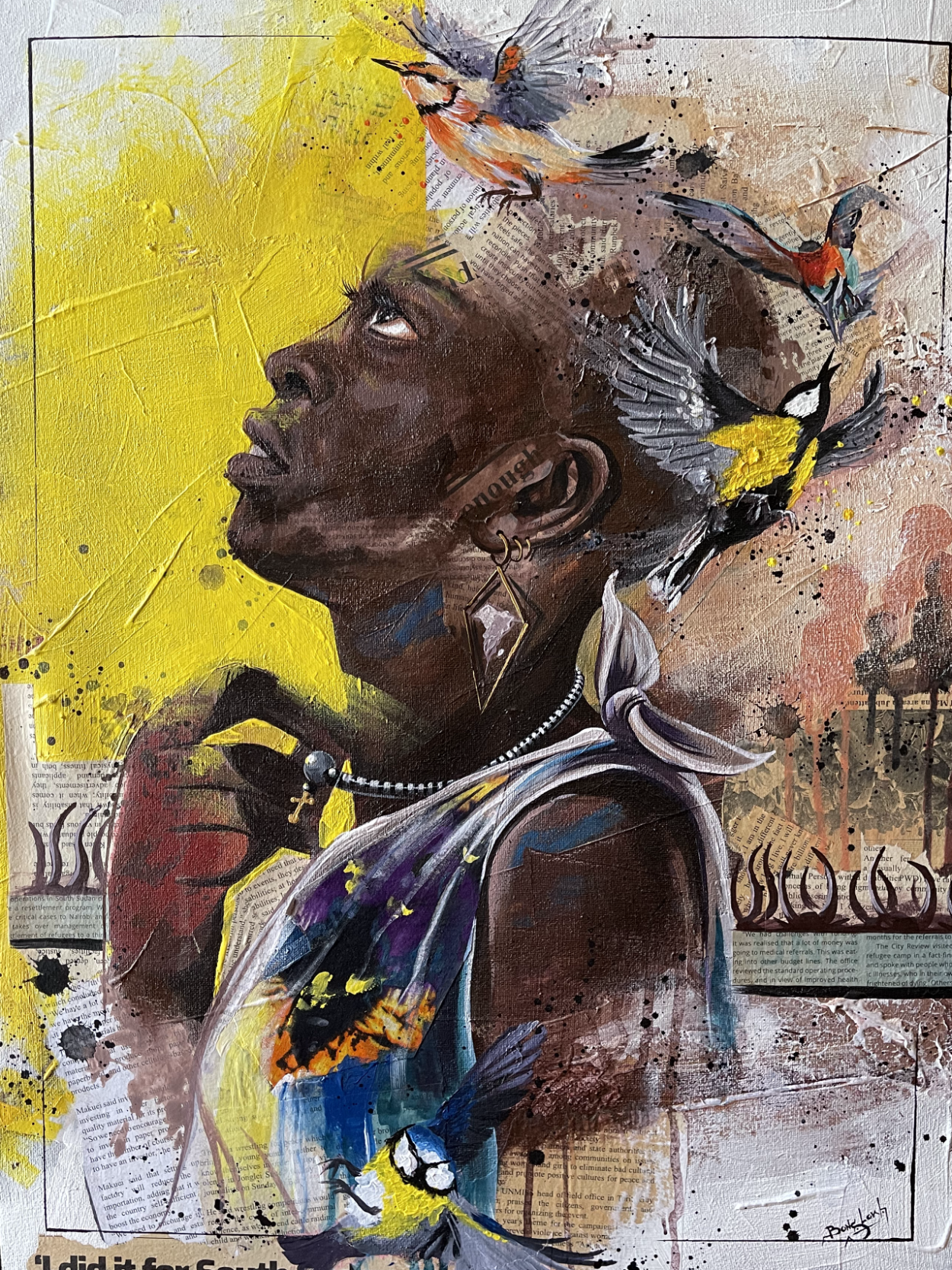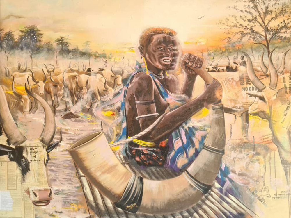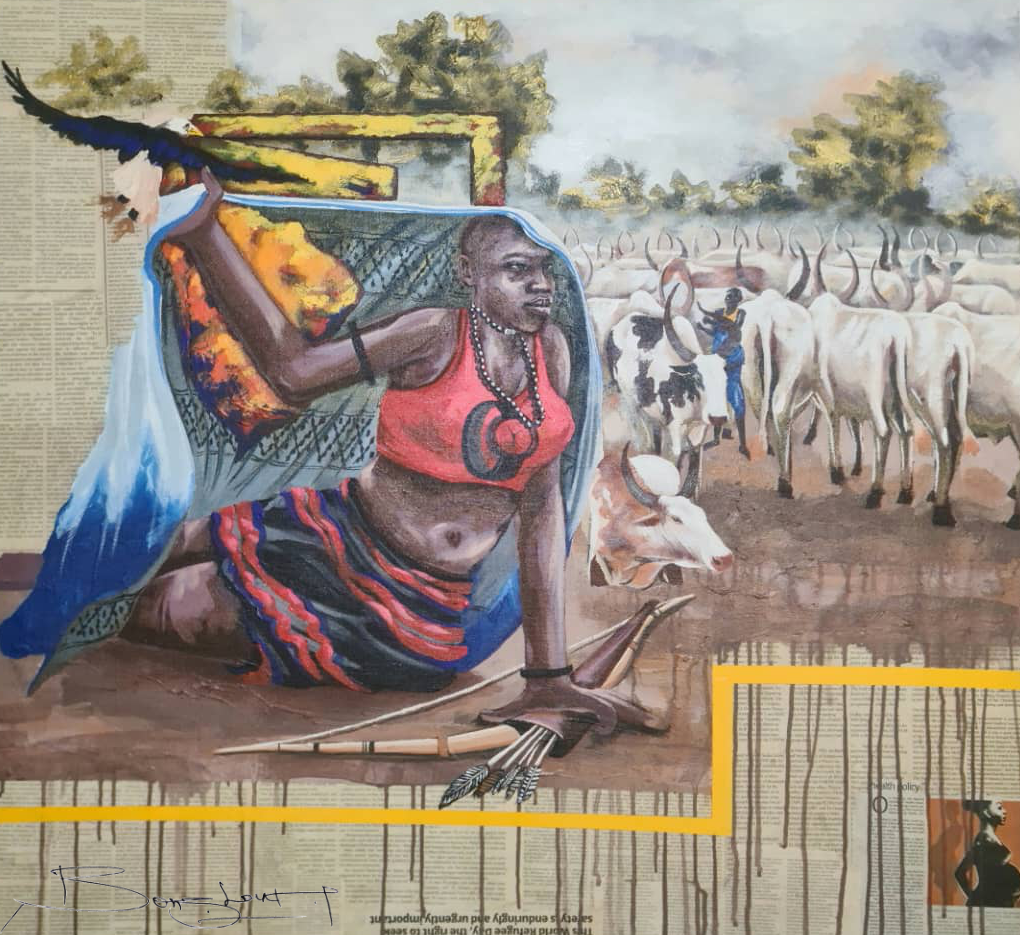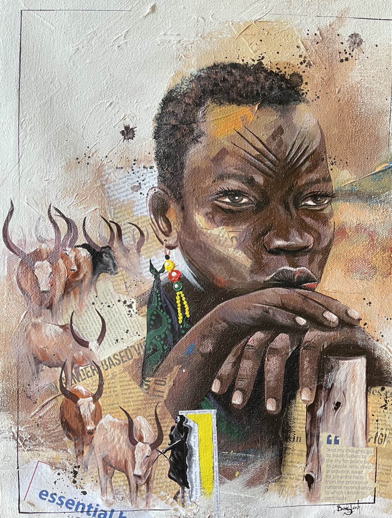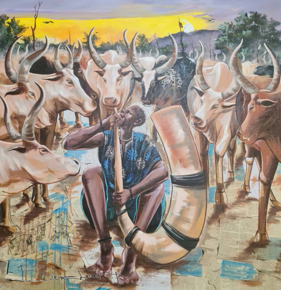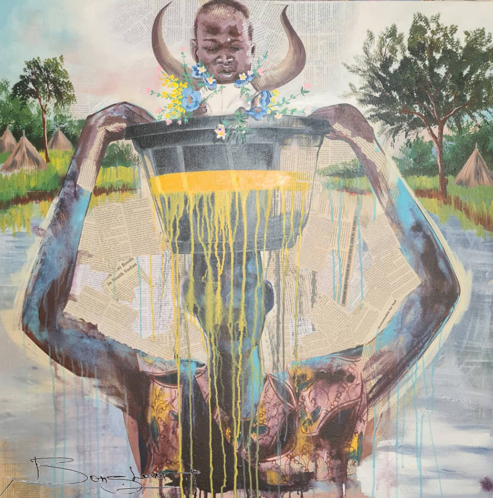 Immerse yourself in the rich cultural tapestry of Bonslow's artistry, reflecting his personal experiences and cultural heritage. Each painting is a testament to his life journey and roots in South Sudan.
