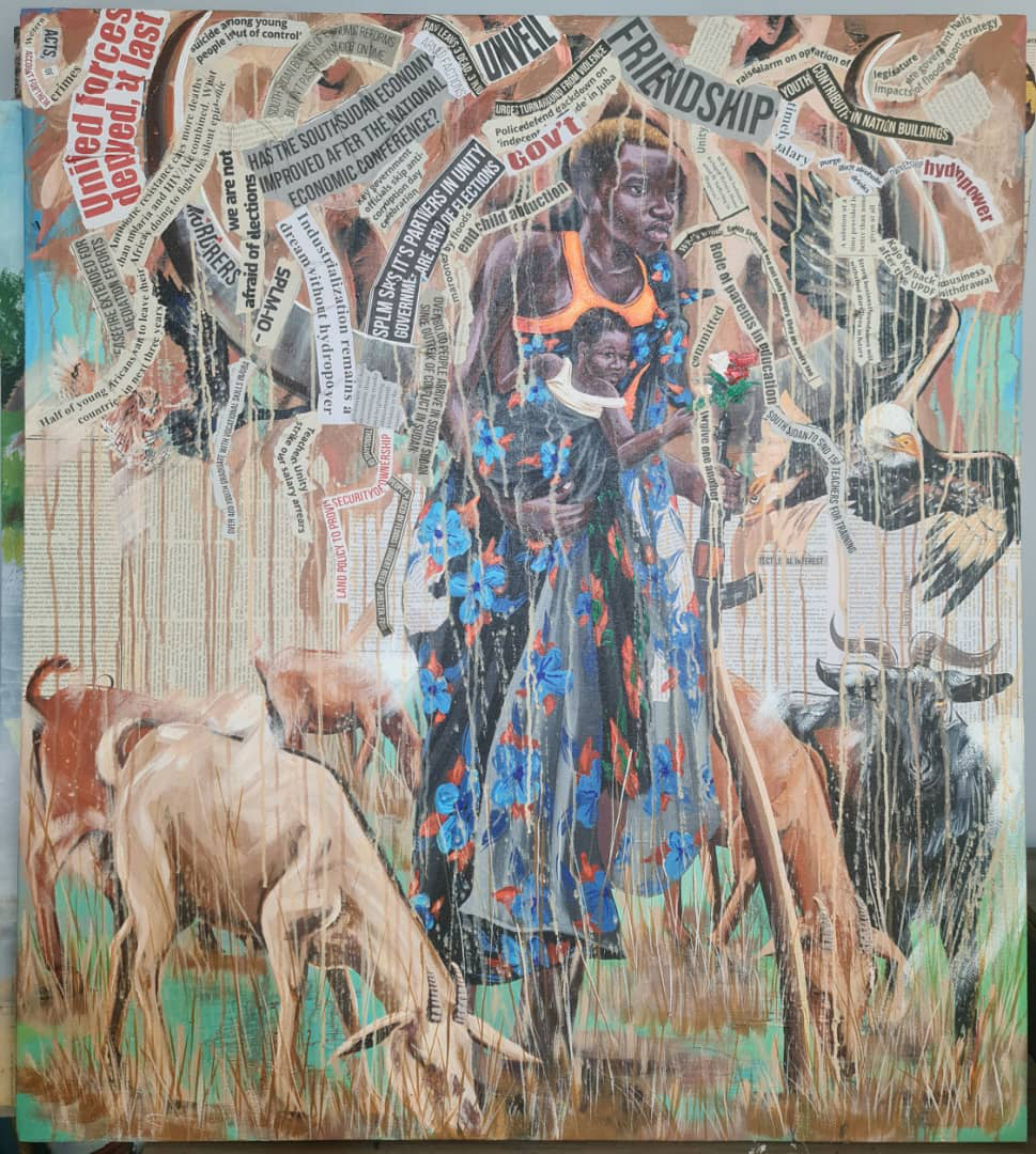 Explore the captivating world of artist Bonslow, renowned for creating unique paintings with acrylic paint on canvases and incorporating newspaper cuttings. Discover his extraordinary African art inspired by his life in Juba, South Sudan.